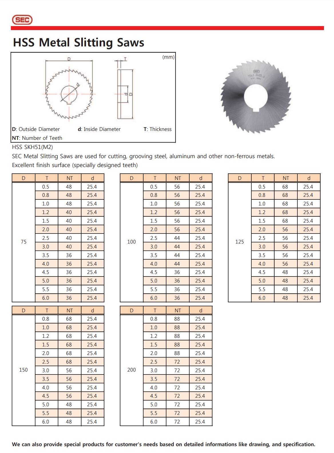 - Dao cưa đĩa dùng để cắt đứt, tạo rãnh cho vật liệu thép, nhôm và các vật liệu phi từ tính.