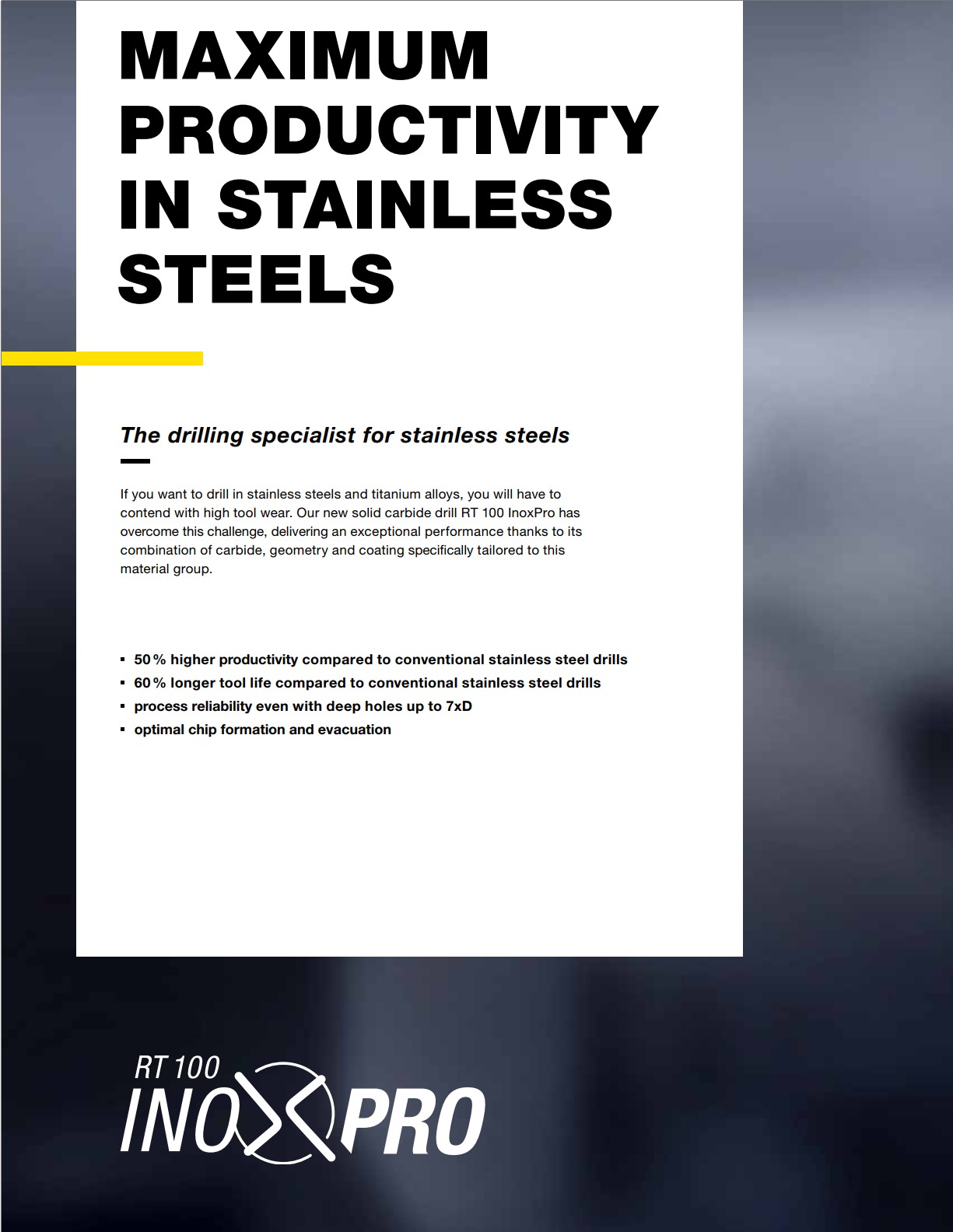RT100 InoxPro - Mũi khoan hợp kim hiệu năng cao cho vật liệu thép không gỉ và hợp kim Titan
